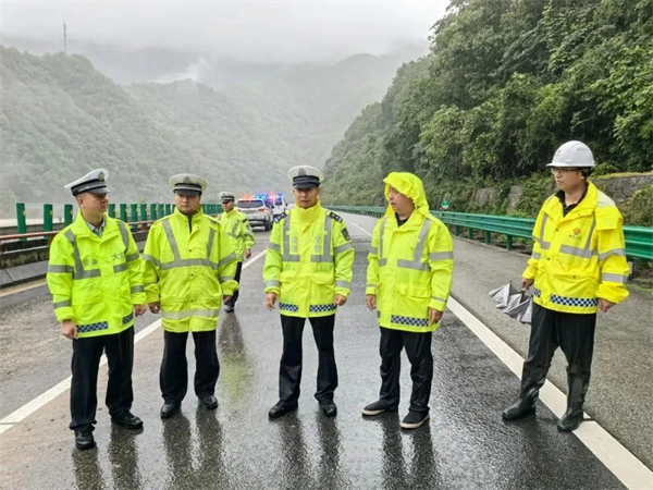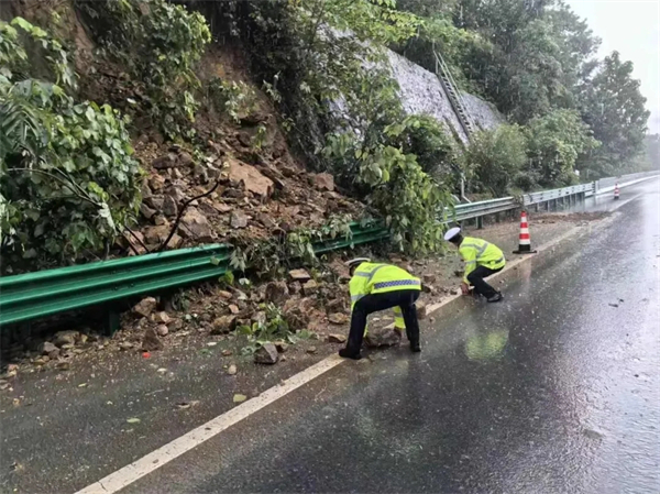 針對強降雨天氣給道路交通安全帶來的不利影響,聯(lián)合路政部門對高速公路易積水、易落石、易滑坡等路段持續(xù)開展交通安全隱患排查,并函告運營部門治理,及時消除各類安全風險隱患。同時,多點駐警,加強安全提示,第一時間通過官方新媒體平臺以及轄區(qū)路面LED情報板,及時發(fā)布路況及天氣信息,使廣大的交通參與者及時了解轄區(qū)路況,為出行駕駛?cè)颂峁┯行⒖迹_保廣大群眾出行安全。