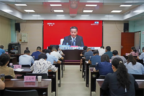 7月19日上午,中共中央在北京舉行新聞發(fā)布會,介紹和解讀黨的二十屆三中全會精神。市委黨校組織2024年春季學期安康市新任縣處級領(lǐng)導干部培訓班暨延安精神再教育專題培訓班(三期)學員集中收看了直播,深入學習領(lǐng)會黨的二十屆三中全會精神。全體學員認真學習領(lǐng)悟全會精神,結(jié)合自身工作實際,暢談感受和體會。