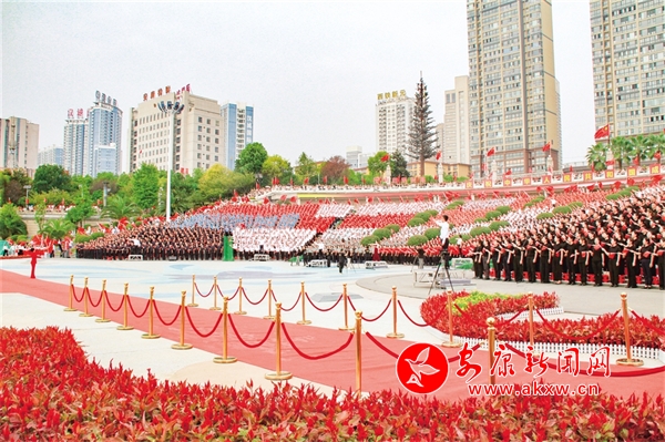9月28日,安康市慶祝中華人民共和國成立75周年群眾大合唱活動在親水廣場舉行。來自全市100多家單位的黨員干部和社區(qū)群眾組成的21支隊(duì)伍共4000余人激情豪邁,歌唱祖國。(記者 張喬 攝)5SU安康新聞網(wǎng)