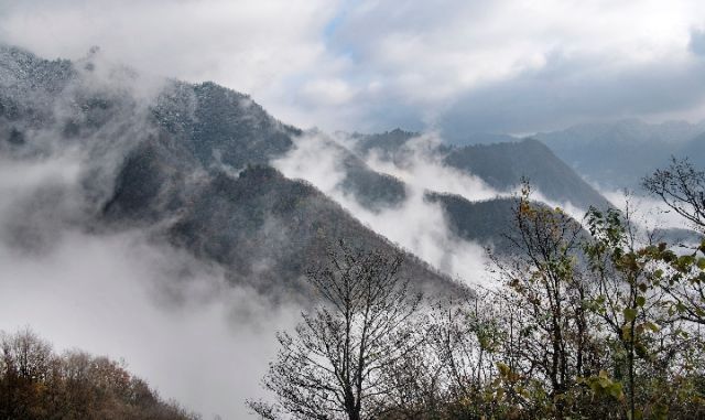 11月8日拍攝的云霧中的鬼谷嶺國家森林公園。初冬雪霽的鬼谷嶺國家森林公園如夢如幻,美不勝收。秦嶺深處的鬼谷嶺國家森林公園位于陜西省安康市石泉縣云霧山鎮(zhèn)的云……