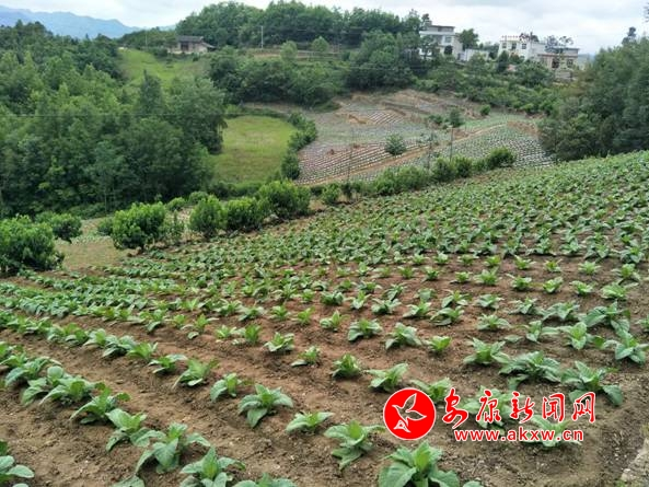 陽(yáng)春三月,沿著“柏油村道”蜿蜒而上,新栽種的楊梅、車?yán)遄雍丸凌怂纳⒂诘貕K中。牛兒愜意吃草,不遠(yuǎn)處的大棚內(nèi)煙苗吐露新綠,新修的標(biāo)準(zhǔn)化烤煙房排列整齊。……