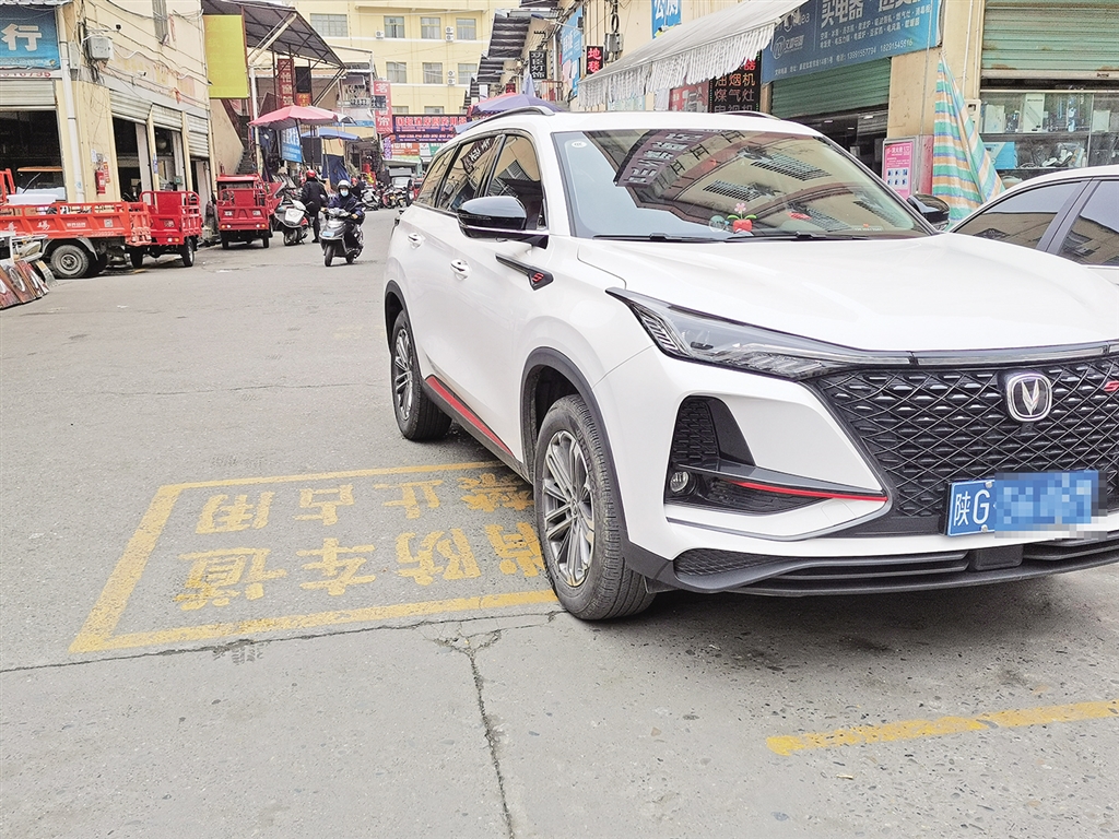 三橋批發(fā)市場內(nèi),一輛白色小轎車停放在消防車道標(biāo)識之上