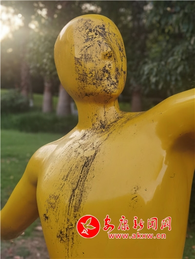 五一期間,安康高新區(qū)運(yùn)動公園內(nèi),一處運(yùn)動塑像遭人“抹黑”,污跡斑斑,有礙觀瞻。(記者 許安)……