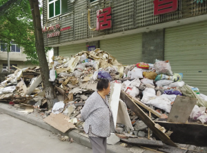 本報(bào)訊(記者 周健 文/圖)9月23日上午,有市民反映:在安康城區(qū)金州廣場(chǎng)旁邊的漢寧路上,有一家茶樓門(mén)前的人行道上垃圾堆成了山,既污染了環(huán)境,又影響行人通行……
