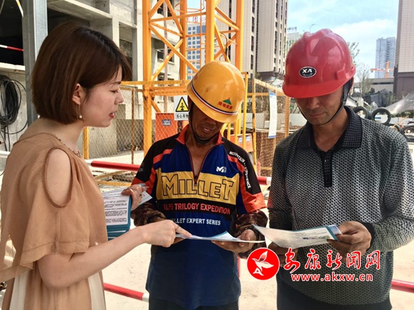 在高新區(qū)部分建筑工地,安康市和漢濱區(qū)人社部門通過(guò)擺放咨詢臺(tái)、放置展板、發(fā)放印制的宣傳資料、現(xiàn)場(chǎng)答疑等形式,對(duì)《社會(huì)保險(xiǎn)法》《工傷保險(xiǎn)條例》在維護(hù)職工權(quán)益方面的重要意義、工傷保險(xiǎn)參保繳費(fèi)政策、工傷認(rèn)定申辦程序以及工傷保險(xiǎn)待遇等方面進(jìn)行宣傳。