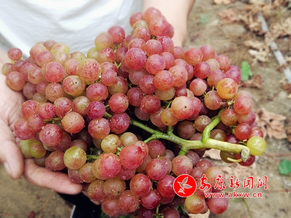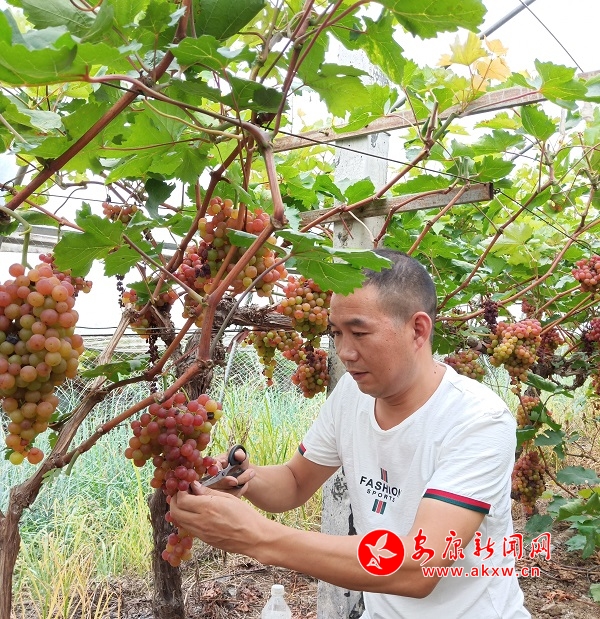 “5H葡萄是我們農(nóng)場的主打品牌,皮薄無核,甜度高。”李華鋒在園里修剪著葡萄藤,并遞來兩串葡萄讓記者品嘗,記者隨手摘下幾顆品嘗,發(fā)現(xiàn)葡萄皮薄肉厚、香甜可口。AtE安康新聞網(wǎng)