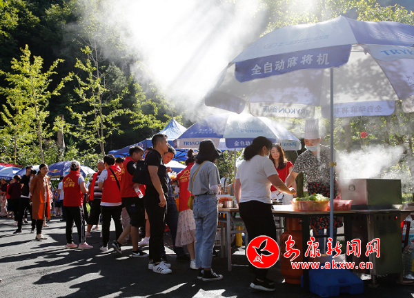 會(huì)場(chǎng)周?chē)母黝愭?zhèn)坪長(zhǎng)壽美食吸引了眾多游人駐足品嘗。