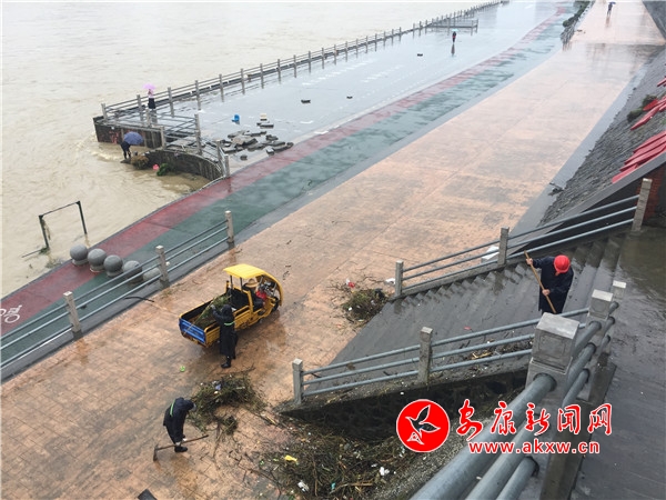 本網訊(記者 張喬 實習記者 馬娟)“我們昨天晚上一直注意漢江的水位,也安排的有人員值班,昨晚兩點多水就已經退了,早上7點多我們就來打掃了。”9月17日,雨水未歇,市政園林處的工作人員正在雨中組織人員清掃洪水過后的垃圾,其中一位工作人員告訴記者。