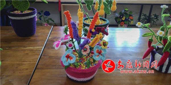 走進旬陽縣城關鎮(zhèn)老城社區(qū),一個專為老年人打造的 “巧手坊”很是吸引人。溫馨的燈光,溫暖的房間,桌子上、架子上擺滿了百合、菊花、鴻運當頭等手工藝編織品,都是普通的毛線編織而成。若不仔細看,這些“綠植”和“盆栽”足能以假亂真。