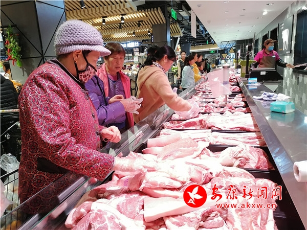 本網訊(實習記者 馬娟)“特價前腿肉23.8元一斤,歡迎新老顧客前來選購。”喜盈門超市廣播著特惠價格信息,很多顧客聞聲而來,挑選豬肉。“五花肉、前腿肉的價格比昨天降了3塊錢,這星期豬肉價格慢慢降下來了。”生鮮區(qū)的員工許連琴說。