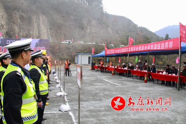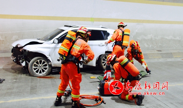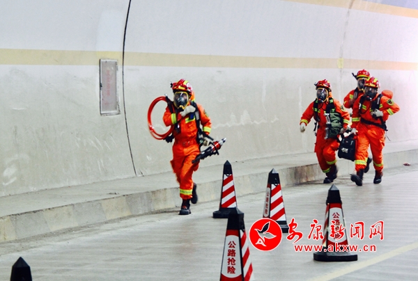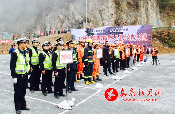 本網(wǎng)訊(記者 張喬)“報告,接110指令,541國道151KM+000M處柏枝埡隧道內(nèi)發(fā)生一起小轎車與危險化學(xué)品運輸車發(fā)生追尾碰撞交通事故,可能發(fā)生;沸孤缎孤、燃燒爆炸和人員傷亡”。 為提高國省干線公路隧道突發(fā)事件應(yīng)急處置能力,檢驗干線公路突發(fā)事件應(yīng)急預(yù)案可行性,11月22日,安康公路管理局2019年度干線公路隧道救援應(yīng)急演練在G541線K151+000嵐皋縣柏枝埡隧道舉行。