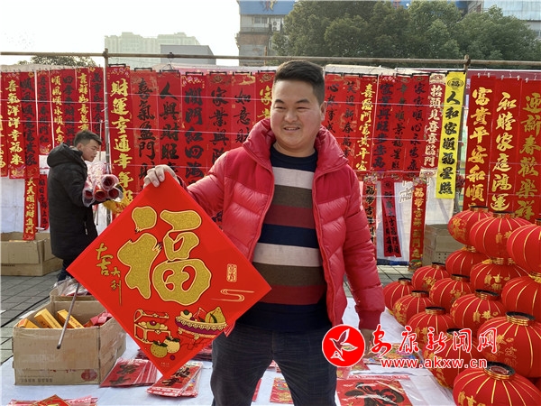 “很多朋友喜歡新寫出來(lái)的春聯(lián),紙張留著墨香,帶著新鮮的祝福。臨近春節(jié),過(guò)年的氣氛越來(lái)越濃了,我每天都會(huì)來(lái)這邊給群眾寫對(duì)聯(lián),從早上寫到下午,能為群眾寫出心儀的春聯(lián),我自己也感到十分滿足。”安康楹聯(lián)協(xié)會(huì)張成軍說(shuō)。