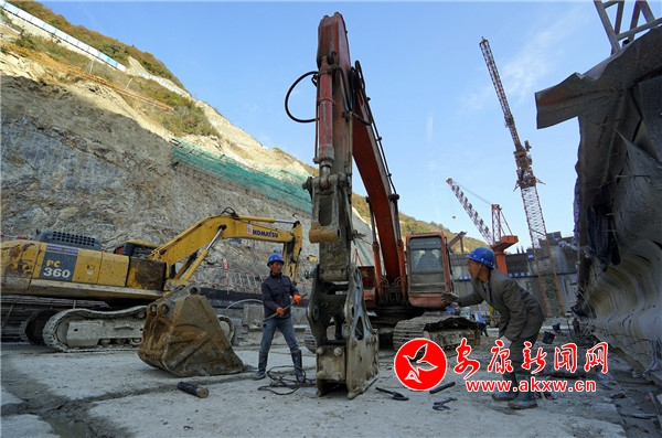 本網(wǎng)訊(記者 張喬 通訊員 楊寧)4月12日,在三河口水利樞紐引漢濟渭工程施工現(xiàn)場,工人們正在加緊施工中。