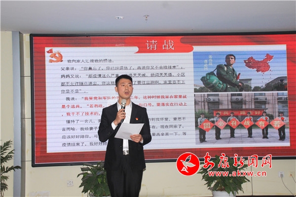 本網(wǎng)訊(記者 張世虎 張喬)青春心向黨,建功新時(shí)代;戰(zhàn)“疫”路上,感謝有你。4月26日, 我市戰(zhàn)“疫”青春故事宣講報(bào)告預(yù)賽活動(dòng)在安康日報(bào)社成功舉辦,來自全市各縣區(qū)的37名選手講述了自己和身邊感人的戰(zhàn)“疫”故事。