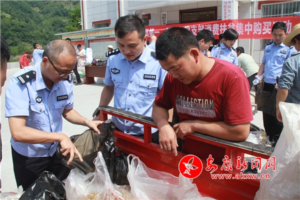 經(jīng)過(guò)前期充分對(duì)接,集中購(gòu)買(mǎi)活動(dòng)現(xiàn)場(chǎng)氣氛熱烈,幫扶群眾準(zhǔn)備的生豬、木耳、香菇、土豆、原釀酒等農(nóng)產(chǎn)品很快就被購(gòu)買(mǎi)一空。銷(xiāo)售現(xiàn)場(chǎng)黨員民警、輔警們爭(zhēng)做愛(ài)心幫扶先鋒,積極購(gòu)買(mǎi)扶貧產(chǎn)品,以實(shí)際行動(dòng)助力消費(fèi)扶貧,據(jù)統(tǒng)計(jì),本次集中購(gòu)買(mǎi)活動(dòng)共購(gòu)買(mǎi)農(nóng)戶(hù)豬肉210斤,原釀酒170斤,木耳、香菇50斤,土豆1200斤,其它各類(lèi)干菜200余斤,總計(jì)價(jià)值13000余元。