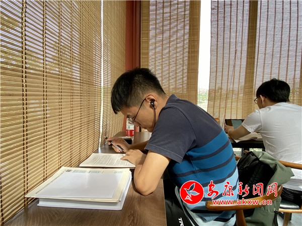 正在龍舟文化園閱讀吧內(nèi)看書的趙浩文是中南大學(xué)大一的學(xué)生,今年暑假他常常泡在閱讀吧學(xué)習(xí),“我一般早上八點鐘過來學(xué)習(xí)看書,中午吃個飯,然后看書看到下午六點多回家。每天都在學(xué)習(xí)英語知識以及預(yù)習(xí)大二的一些課程,感覺在閱讀吧學(xué)習(xí)很安靜,而且里面裝有空調(diào),環(huán)境好。現(xiàn)在有些場所恢復(fù)了24小時的自助服務(wù),也滿足了我們夜間讀書的需求。閱讀吧是我們這些學(xué)生學(xué)習(xí)和備考的理想場所。”