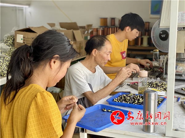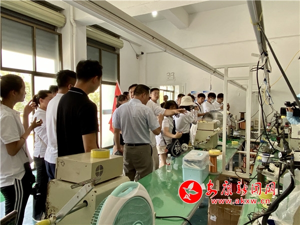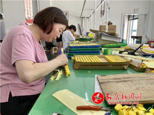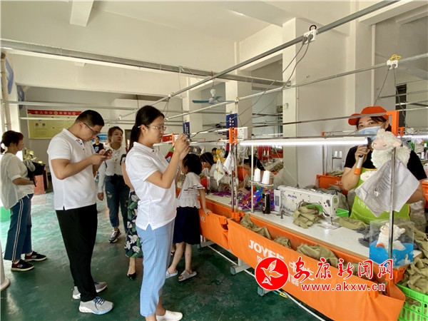 采訪團一行來到平利縣老縣鎮(zhèn)錦屏社區(qū),社區(qū)四個工廠內100多名工人正在生產勞作。