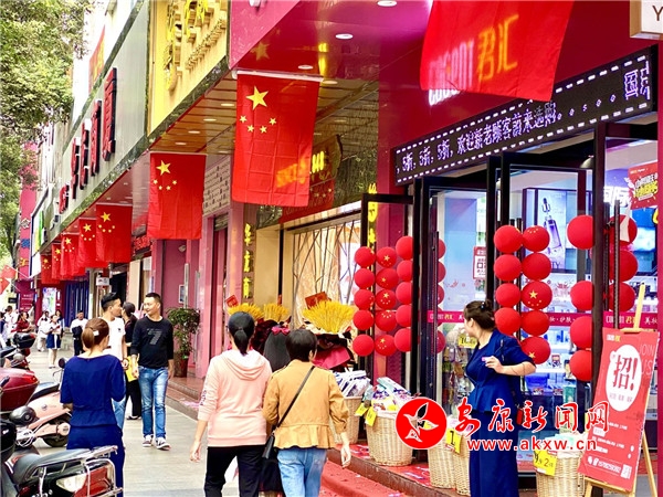 “國慶期間,我們布展的都是以愛國為主題的裝飾,宣揚的就是愛國精神。這家店門口擺放有460余面五星紅旗,我們4個店總共裝飾有1200多面五星紅旗。我們將五星紅旗擺在店前主要為了烘托國慶氛圍,培養(yǎng)我們員工的愛國情懷,帶動周圍喜慶的氣氛。后期我們還將繼續(xù)開展國慶詩歌朗誦比賽等活動,弘揚愛國精神。”民威商廈策劃部負責(zé)人陳篤志說。