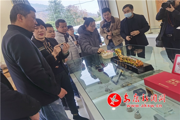 采訪團(tuán)一行首先到達(dá)安康市石泉縣池河鎮(zhèn),該鎮(zhèn)著力圍繞“鎏金銅蠶”打造“金蠶文化。其中,“鎏金銅蠶”文創(chuàng)產(chǎn)品展銷中心是陜西歷史博物館授權(quán)掛牌的全省首家縣級鎏金銅蠶文創(chuàng)產(chǎn)品展示推廣中心,也是國內(nèi)首家以鎏金銅蠶文化為內(nèi)核打造的文創(chuàng)展銷平臺。明星旅游村屬于金蠶小鎮(zhèn)打造的農(nóng)桑體驗(yàn)版塊,該村依托蠶桑產(chǎn)業(yè)和鎏金銅蠶文化,積極探索“農(nóng)旅融合”“文旅融合”模式,大力開發(fā)鄉(xiāng)村旅游。目前,已累計(jì)投資8000萬元,建成桑園6000余畝,種植各類桑品種1000余種;建成桑品種博覽園、果桑采摘園、特色民居、桑海小木屋、農(nóng)家樂、空中漂流、山地摩托、天空之鏡、桑海酒吧等一大批旅游體驗(yàn)項(xiàng)目,并配套建設(shè)了桑棲旅游環(huán)線、供水系統(tǒng)、旅游公廁、生態(tài)停車場、標(biāo)識導(dǎo)視、鄉(xiāng)村大舞臺等公共服務(wù)設(shè)施。