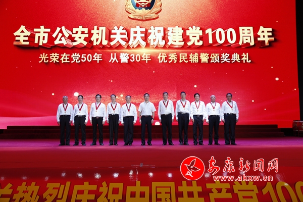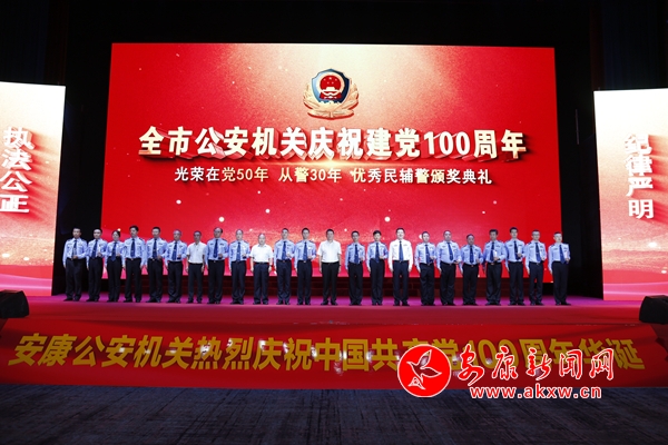 本次活動(dòng)旨在全面展示全市公安隊(duì)伍教育整頓成果成效,大力弘揚(yáng)公安英模精神,宣傳表彰隊(duì)伍中涌現(xiàn)出來(lái)的先進(jìn)典型,凝聚警心、鼓舞士氣,激發(fā)廣大民警全力以赴做好保安全、護(hù)穩(wěn)定、抓改革、促發(fā)展各項(xiàng)工作熱情;顒(dòng)分為安寧康泰、牢記使命、不忘初心三個(gè)篇章,一曲曲高昂的贊歌,一幕幕鮮活的畫(huà)面,一個(gè)個(gè)感人的故事,生動(dòng)再現(xiàn)了中國(guó)共產(chǎn)黨建黨100年來(lái),矢志踐行初心使命,一路披荊斬棘、篳路藍(lán)縷,錨定奮斗目標(biāo),創(chuàng)造輝煌開(kāi)辟未來(lái)的壯麗詩(shī)篇;形象展示了安康公安機(jī)關(guān)和廣大民輔警牢記初心使命,服務(wù)中心大局,扎實(shí)推進(jìn)黨史學(xué)習(xí)教育和公安隊(duì)伍教育整頓,忠誠(chéng)履職,砥礪奮進(jìn)的良好形象。活動(dòng)中,與會(huì)領(lǐng)導(dǎo)向優(yōu)秀民輔警頒發(fā)了獎(jiǎng)杯,向“光榮在黨50年”代表頒發(fā)了勛章,向“從警30年”代表頒發(fā)了紀(jì)念章。