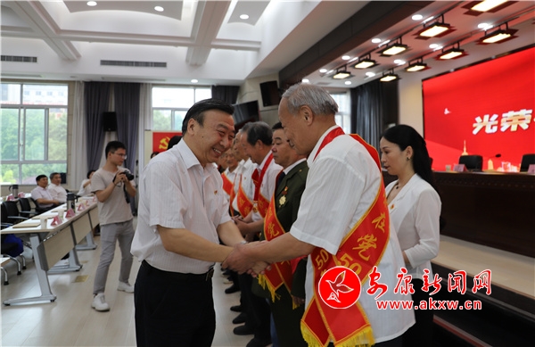 為慶祝中國共產(chǎn)黨成立100周年,今年黨中央首次向黨齡達(dá)到50周年、一貫表現(xiàn)良好的黨員頒發(fā)“光榮在黨50年”紀(jì)念章。據(jù)了解,經(jīng)各機(jī)關(guān)基層黨組織逐級統(tǒng)計、公示、審核,市直機(jī)關(guān)共有412名黨員符合上述條件。此次會議共邀請了10名老黨員代表到會,向他們頒發(fā)“光榮在黨50年”紀(jì)念章。