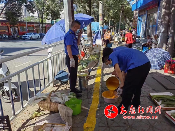 6月24日,記者來到江北大道安康農商銀行(勞動支行)附近,在現場記者看到,安康市城市管理執(zhí)法局漢濱分局關廟執(zhí)法大隊相關工作人員正在針對張溝橋路段臨時攤位線毀損問題進行及時補劃,同時針對擺攤戶進行全國文明城市創(chuàng)建宣傳,并提出相關經營要求,要求商戶不得越線經營、不得影響行人通行及交通安全,自覺維護臨時攤點周邊的環(huán)境衛(wèi)生、秩序。“針對張溝橋路段附近村民自產自銷農產品流動經營叫賣現象,為規(guī)范管理張溝橋便民市場經營秩序,方便附近居民生活出行,我們于今日對流動的商販攤位進行劃線規(guī)范,劃線規(guī)范后,對不遵守相關規(guī)定出線占道經營,影響行人通行及交通安全的行為,我們將依法給予相應處罰措施。”安康市城市管理執(zhí)法局漢濱分局關廟執(zhí)法大隊綜合股股長陳超表示。