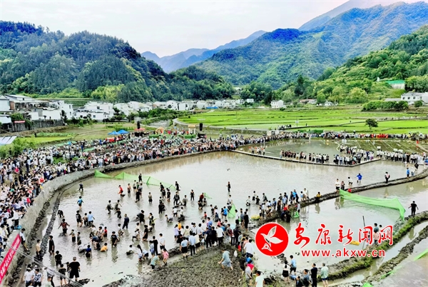 活動現(xiàn)場,人群熙攘,氣氛熱烈,宣讀人恭頌插秧祭文后,開秧門、迎田水儀式莊重舉行,寓意著新一年的農(nóng)耕生活正式開啟。儀式結(jié)束后,插秧比賽、拔河比賽、挑擔子接力賽、捉鴨子抓稻魚等一系列豐富多彩的農(nóng)事活動陸續(xù)展開,吸引了眾多游客和當?shù)卮迕駸崆閰⑴c,插秧比賽的環(huán)節(jié)中,參賽者們身著傳統(tǒng)農(nóng)裝,腳踏泥濘田地,隨著裁判的一聲令下,參賽者們迅速彎腰,雙手熟練地抓取秧苗,準確地將秧苗插入泥土中,不一會,一株株綠油油的秧苗,便整齊而有序地立在田地。隨后的捉鴨子抓稻魚活動,更是將現(xiàn)場的氣氛推向高潮,田邊的游客們紛紛下田捉鴨捕魚,體驗鄉(xiāng)村生活的樂趣,一時間現(xiàn)場笑聲不斷,氣氛歡樂祥和,構(gòu)成了一幅生動的山水田園畫卷。