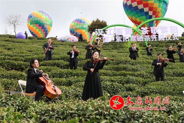 開園儀式有茶山實景演藝、紫陽民歌聯(lián)唱、祭茶神儀式、華服秀等。上午10時,開園儀式在沉浸式交響樂《春之聲》中浪漫開場,樂團成員分布在茶園間,音符隨山風(fēng)流淌,樂聲與茶山風(fēng)光交相輝映,觀眾置身茶園,仿若與自然共譜春之樂章。茶山大秀《生生不息》以天地為幕、茶園為臺,采茶號子響徹山谷,7位紫陽民歌手帶來的聯(lián)唱《山河共鳴》,以原生態(tài)唱腔配以舞蹈演員的靈動演繹,唱響茶鄉(xiāng)人民對自然的敬畏與生活的熱愛。整場演出高潮迭起、亮點紛呈,令嘉賓和游客們流連忘返。