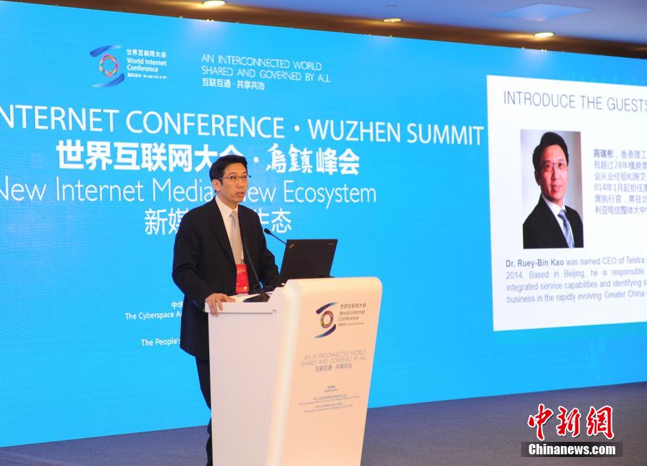 11月19日,澳大利亞電信大中華區(qū)CEO高瑞彬在烏鎮(zhèn)舉行的首屆世界互聯(lián)網(wǎng)大會新媒體分論壇上發(fā)言。當天,世界互聯(lián)網(wǎng)大會在浙江烏鎮(zhèn)拉開帷幕。 中新社發(fā) 李晨韻 攝aa5安康新聞網(wǎng)