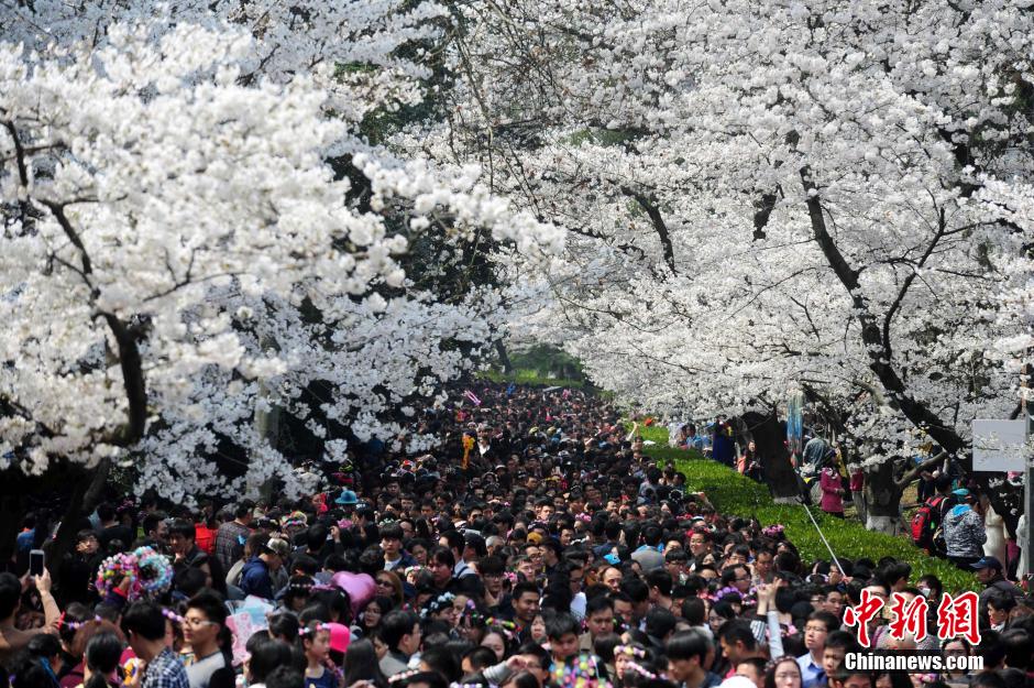 3月21日,武大櫻花盛開游客如織。當(dāng)日,武大櫻花盛開的首個(gè)雙休日。長(zhǎng)約200米的櫻花大道上1000多株櫻花競(jìng)相綻放,吸引著數(shù)萬(wàn)游客,使寧?kù)o的校園變成了熱鬧的公園。中新社發(fā)張暢 攝Suf安康新聞網(wǎng)