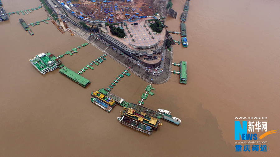 7月1日,今年長江、嘉陵江最大洪峰過境后的重慶朝天門碼頭。 本組圖片由新華網(wǎng)新聞無人機隊拍攝tsz安康新聞網(wǎng)