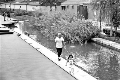 浮雕旁邊還搭建了一些木質(zhì)平臺,居民可以休憩散步。姚文國告訴北青報記者,這條景觀河道,不僅還原了古河道走向,還成為周邊居民的休閑場所,實現(xiàn)生態(tài)環(huán)境提升!跋乱徊綄Τ吻逑麻l遺址的局部清理修復(fù),國家文物局已經(jīng)批復(fù)了修復(fù)方案,未來將原址原風(fēng)貌地展示!