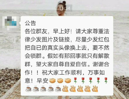 【傳聞】有桂林網(wǎng)民表示收到了一條“中國網(wǎng)絡(luò)監(jiān)控在清理整頓,要求微信群友將頭像更換為個人真實頭像,否則會被鎖群,群成員的手機號也會被控制”的消息。