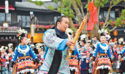 12月2日,貴州省黔東南苗族侗族自治州丹寨縣舉行盛大的苗族服飾展演巡游活動(dòng),迎接一年一度的苗族祭尤節(jié),全縣8個(gè)不同支系的苗族同胞身著盛裝,齊聚丹寨,向海內(nèi)外游客展示苗族盛裝服飾魅力!凹烙裙(jié)”苗語(yǔ)叫“農(nóng)尤”,“農(nóng)”意為吃或祭,“尤”為人名,即苗族九黎部落的首領(lǐng)蚩尤!凹烙裙(jié)”在2008年3月入選貴州省第二批非物質(zhì)文化遺產(chǎn)名錄。