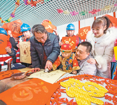 2月7日,北京木版年畫(huà)匠人張闊正為北京建工集團(tuán)總承包部A2工程項(xiàng)目部的工人們現(xiàn)場(chǎng)印制生動(dòng)的狗年木版年畫(huà)。再過(guò)幾天就要過(guò)年了,北京市文聯(lián)組織藝術(shù)家們?yōu)檫@些北京副中心的建設(shè)者們送上春聯(lián)年畫(huà)和祝福。(記者 徐燁 攝) wvQ安康新聞網(wǎng)