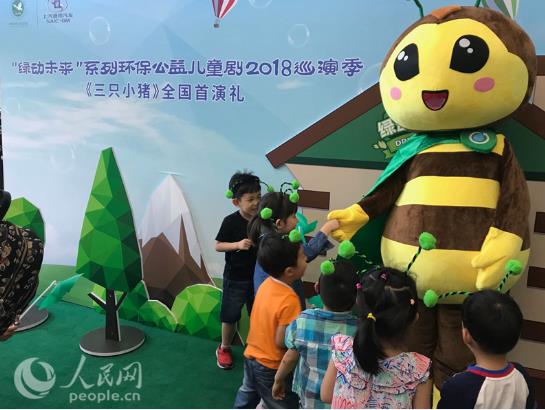 作為“五年計劃”重要部分,“綠動未來”系列環(huán)保公益兒童劇的首部作品《三只小豬》將走進北京、杭州、上海、蘇州、寧波、合肥、武漢、長沙、青島和深圳十個城市!度恍∝i》是百老匯著名的兒童合家歡音樂劇,由“開心麻花”引入國內(nèi)。經(jīng)過改編的《三只小豬》,被賦予了全新的環(huán)保理念,融入了新角色——“綠動未來”環(huán)保公益平臺卡通形象“小青蜂”。在當(dāng)日的首演中,“小青蜂”不斷向小朋友們傳播環(huán)保知識,讓孩子們在歡樂看劇時感悟自然、綠色、成長與愛。