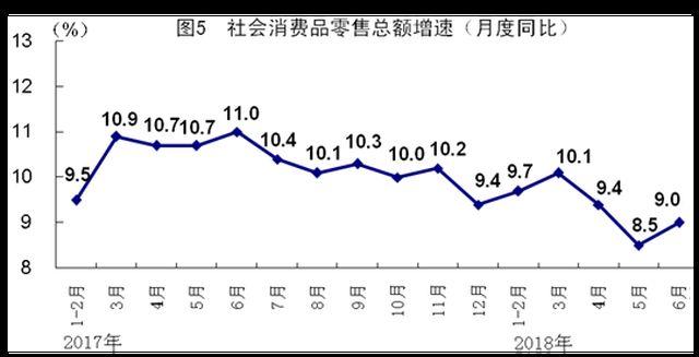上半年,全國居民人均消費(fèi)支出9609元,同比名義增長8.8%,比一季度加快1.2個(gè)百分點(diǎn),扣除價(jià)格因素實(shí)際增長6.7%,加快1.3個(gè)百分點(diǎn)。其中,城鎮(zhèn)居民人均消費(fèi)支出名義增長6.8%,加快1.1個(gè)百分點(diǎn);農(nóng)村居民人均消費(fèi)支出名義增長12.2%,加快1.2個(gè)百分點(diǎn)。上半年,社會消費(fèi)品零售總額180018億元,同比增長9.4%,增速比一季度回落0.4個(gè)百分點(diǎn)。按經(jīng)營單位所在地分,城鎮(zhèn)消費(fèi)品零售額154091億元,增長9.2%;鄉(xiāng)村消費(fèi)品零售額25927億元,增長10.5%。按消費(fèi)類型分,餐飲收入19457億元,增長9.9%;商品零售160561億元,增長9.3%。消費(fèi)升級類商品銷售增長較快,限額以上單位家用電器和音像器材類、通訊器材類和化妝品類同比分別增長10.6%、10.6%和14.2%,分別比上年同期加快0.2、0.5和2.9個(gè)百分點(diǎn)。6月份,社會消費(fèi)品零售總額同比增長9.0%,比上月加快0.5個(gè)百分點(diǎn)。