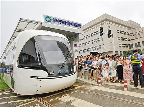 湖北省武漢市省中醫(yī)院門口,乘客在等待有軌電車。近年來,當(dāng)?shù)匕训罔F、有軌電車、公交車和出租車站點(diǎn)安排在離醫(yī)院近的地方,讓百姓方便就醫(yī)。 鄭傳海攝