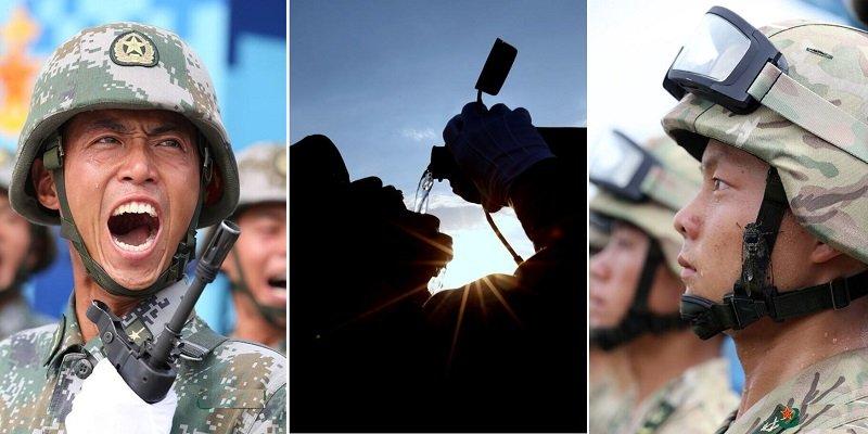 10:00,一只知了落在正在進(jìn)行軍姿訓(xùn)練的戰(zhàn)士臉上。guu安康新聞網(wǎng)