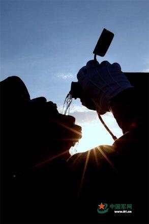 14:00,一名戰(zhàn)士正在飲水。當(dāng)天中午,部分乘員早早就開(kāi)始加班強(qiáng)化訓(xùn)練。guu安康新聞網(wǎng)