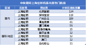 中秋期間上海虹橋、浦東機(jī)場(chǎng)出港熱門航線。CHK安康新聞網(wǎng)