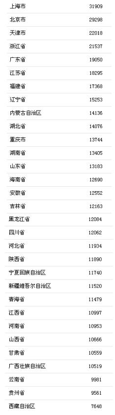 前三季度31省區(qū)市人均可支配收入。來自國家統(tǒng)計(jì)局xGT安康新聞網(wǎng)