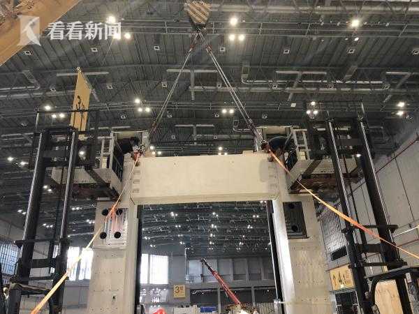 首屆中國(guó)國(guó)際進(jìn)口博覽會(huì)最大的展品,金牛座龍門銑床今天龍門構(gòu)架完成,預(yù)計(jì)下周二整個(gè)設(shè)備將完成安裝。