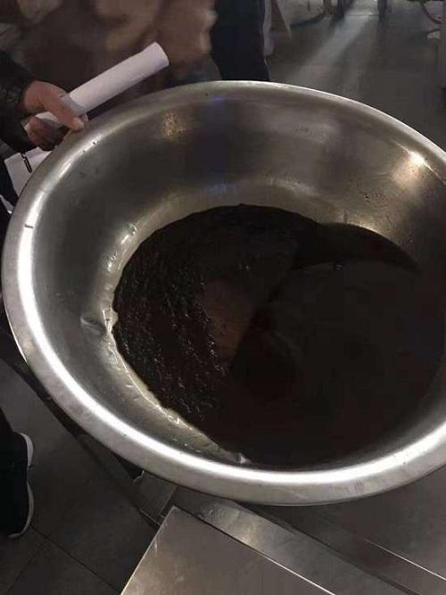 面盆內(nèi)疑盛放黑色食用油,盆底有沉淀物。 學(xué)生家長供圖75a安康新聞網(wǎng)