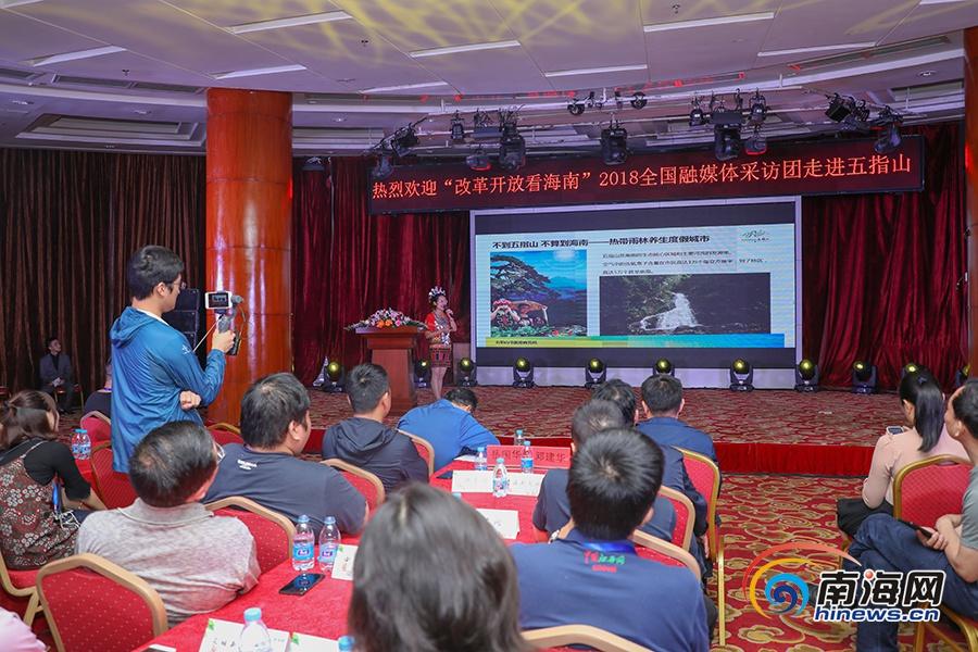 在當(dāng)天的推介會(huì)上,五指山市旅游商務(wù)局工作人員對(duì)來(lái)自全國(guó)60余家重點(diǎn)新聞網(wǎng)站、新聞客戶(hù)端的編輯記者作了精彩的旅游資源推介,詳細(xì)介紹五指山獨(dú)特的地理位置、資源形態(tài)、氣候資源、文化底蘊(yùn)以及有著巨大發(fā)展?jié)摿Φ募t色旅游資源。