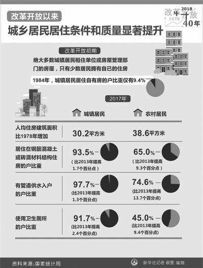 改革開(kāi)放40年,我國(guó)城鄉(xiāng)居民從吃穿住用的品質(zhì),到能夠享受的醫(yī)療教育服務(wù)水平,都發(fā)生著重大的變化,生活質(zhì)量不斷提升,食品支出比重明顯下降,服裝時(shí)尚化,耐用消費(fèi)品升級(jí)換代。移動(dòng)電話、計(jì)算機(jī)、汽車走入尋常百姓家。2017年,城鎮(zhèn)居民平均每百戶擁有移動(dòng)電話235部,計(jì)算機(jī)80.8臺(tái),家用汽車37.5輛;農(nóng)村居民平均每百戶擁有移動(dòng)電話246部,計(jì)算機(jī)29.2臺(tái),家用汽車19.3輛。
