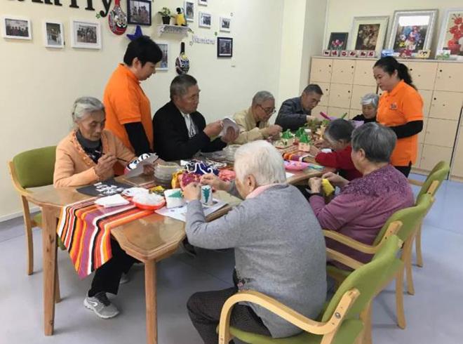 2018年11月6日,8位年齡在79至92歲的老人正在做手工。習(xí)近平與他們一一握了手。來源:央視新聞