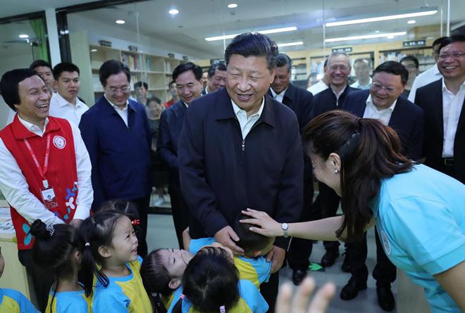 2018年10月24日中午,正在深圳市考察的習(xí)近平來到龍華區(qū)民治街道北站社區(qū),走進(jìn)社區(qū)黨群服務(wù)中心!稗k事方便嗎?”“對社區(qū)環(huán)境滿意嗎?”“退休生活怎么樣?”他問得十分仔細(xì)。在社區(qū)兒童之家,當(dāng)孩子們看到習(xí)爺爺來了,一個個興奮地跑上前來,熱情擁抱習(xí)爺爺?倳浻H切地摸摸他們的小腦袋,同他們打招呼。