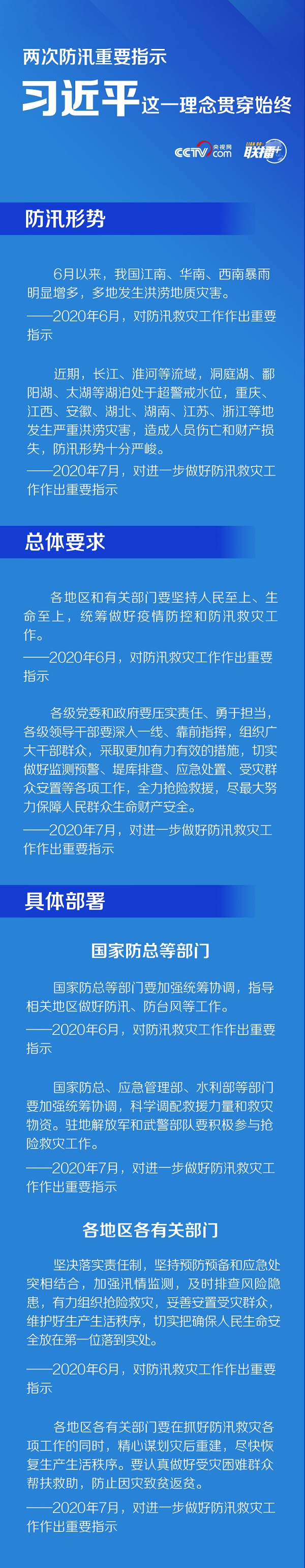 這是習近平總書記近期第二次對防汛救災(zāi)工作作出重要指示。在6月作出的重要指示中,總書記要求,“各地區(qū)和有關(guān)部門要堅持人民至上、生命至上,統(tǒng)籌做好疫情防控和防汛救災(zāi)工作”“切實把確保人民生命安全放在第一位落到實處”。