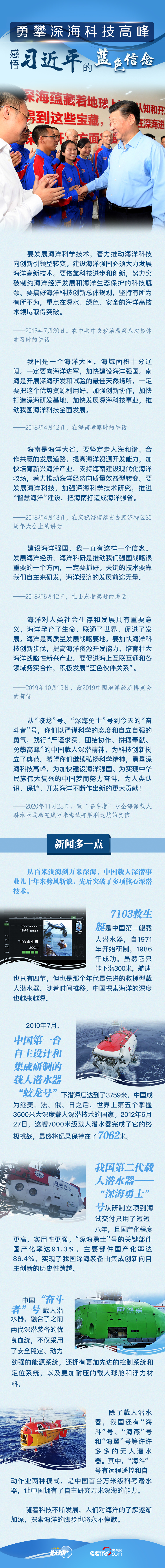 習(xí)近平總書記在賀信中指出,“奮斗者”號研制及海試的成功,標(biāo)志著我國具有了進(jìn)入世界海洋最深處開展科學(xué)探索和研究的能力,體現(xiàn)了我國在海洋高技術(shù)領(lǐng)域的綜合實(shí)力?倳浵M兄铝τ谏詈Qb備研發(fā)、深淵科學(xué)研究的科研工作者繼續(xù)弘揚(yáng)科學(xué)精神,勇攀深?萍几叻澹瑸榧涌旖ㄔO(shè)海洋強(qiáng)國、為實(shí)現(xiàn)中華民族偉大復(fù)興的中國夢而努力奮斗,為人類認(rèn)識、保護(hù)、開發(fā)海洋不斷作出新的更大貢獻(xiàn)。